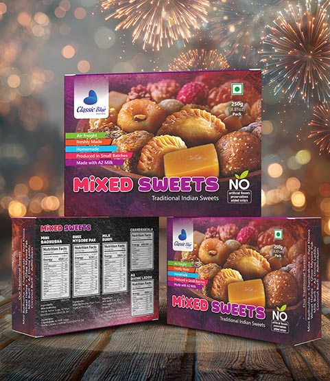 Every pack of Classic Blue Mixed Sweets celebrates the craftsmanship of artisans and dedication of farmers, bringing the rich heritage of traditional sweets to your table. Perfect for festivals, gifting, or daily indulgence, itβs a mix that delights every age and every palate.