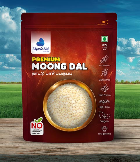 In every spoon of Classic Blue Premium Moong Dhal, you taste more than just food β you taste the care of farmers who protect the soil like their own child, the rains that kissed the fields, and the sun that ripened each grain with love.
