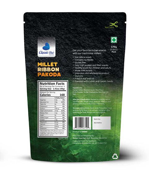 At Classic Blue, we bring the heritage of South Indian snacks to your table with a modern, healthy twist. Our Millet Ribbon Pakoda is more than a snack – it’s crunchy tradition, wholesome nutrition, and flavorful delight in every bite.