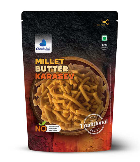 At Classic Blue, we combine the heritage of South Indian snacks with a modern touch of buttery goodness. Butter Kara Sev is more than a snack – it’s a crunchy celebration of taste, tradition, and joy in every bite.