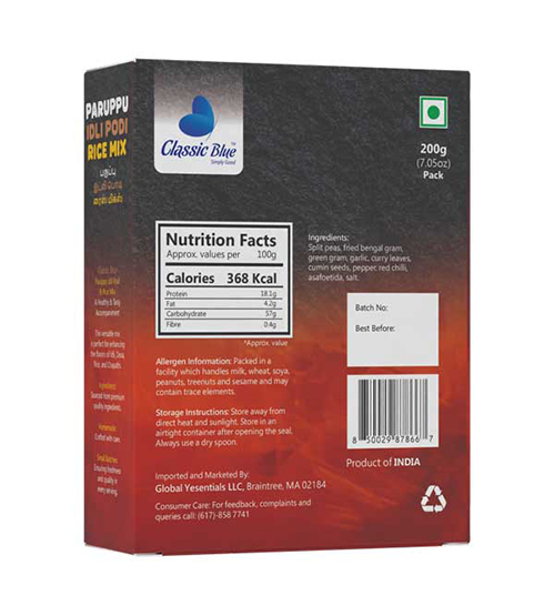 Transform your rice, idly, or dosa meals into a healthy, aromatic delight with Classic Blue Paruppu Rice Mix / Idly Podi! Made with premium paruppu (lentils), roasted spices, and traditional seasonings, this mix brings rich taste, protein, and South Indian heritage to your dining table.