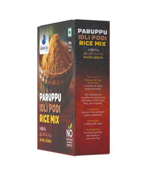 With Classic Blue Paruppu Rice Mix / Idly Podi, every meal becomes healthy, aromatic, and infused with artisanal care. Bring heritage, nutrition, and festival warmth to your table with a mix cherished across generations.