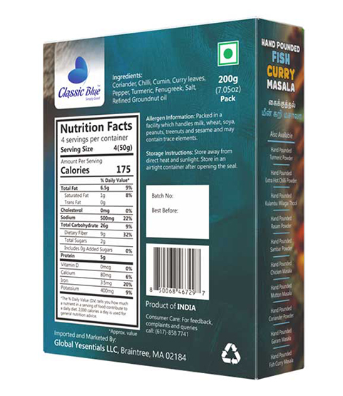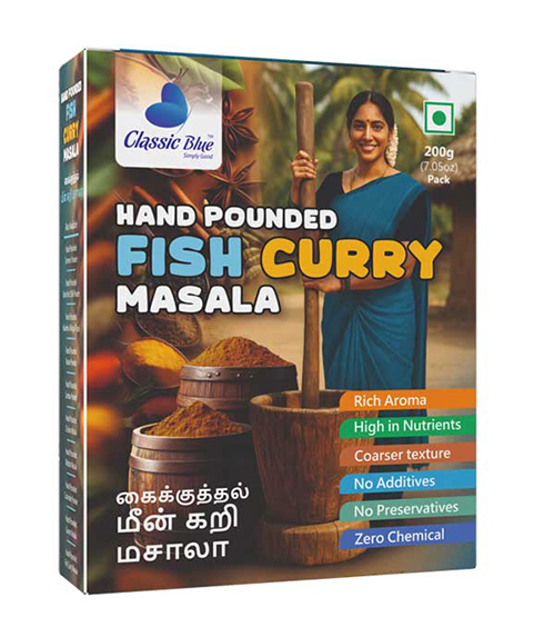 At Classic Blue, we honor coastal culinary traditions. Our Handpound Fish Curry Masala is more than a spice β itβs a journey of flavor, authenticity, and artisanal care, bringing restaurant-style fish curry to your home.