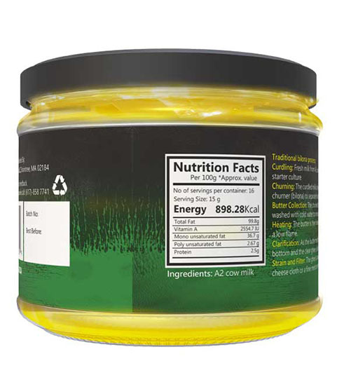 - 100% A2 Cow Milk – Collected from grass-fed indigenous cows rich in A2 beta-casein protein.