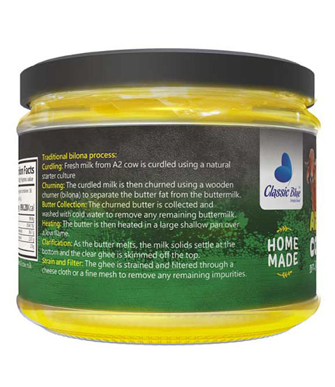 The Bilona method is not just a process – it is centuries of Indian culinary wisdom. Every jar of Classic Blue A2 Bilona Ghee is crafted with patience, purity, and respect for nature and farmers, ensuring an authentic and wholesome product.
