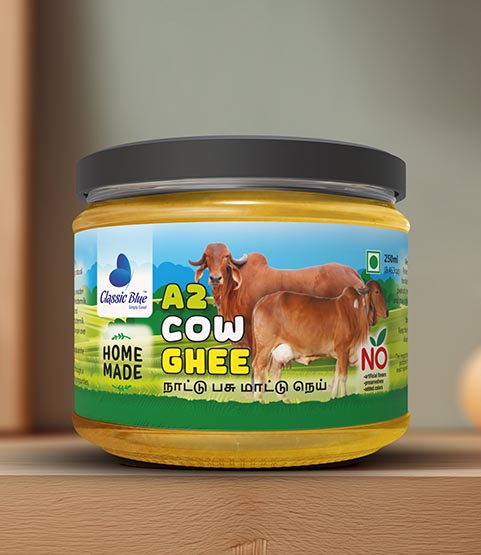 With Classic Blue A2 Bilona Ghee, every meal becomes a celebration of taste, tradition, and wellness – bringing the ancient wisdom of Indian kitchens to your home.