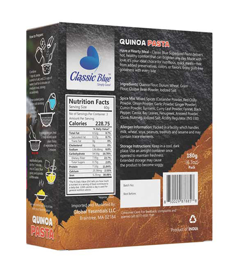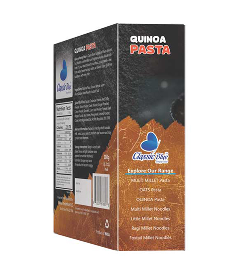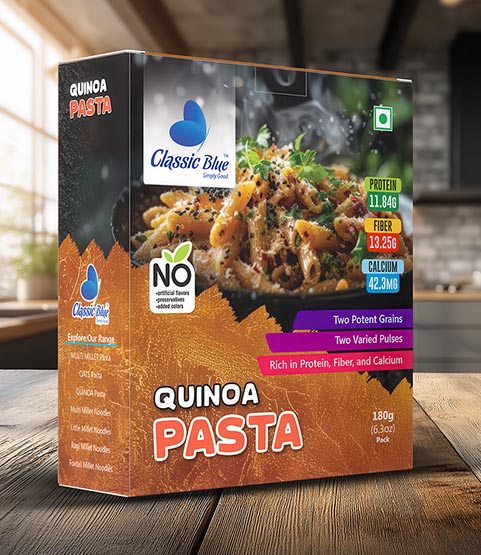 Every pack of Classic Blue Quinoa Pasta celebrates the care of local farmers and artisanal craftsmanship. Perfect for everyday meals, festive occasions, or gifting, it adds nutrition, flavor, and love to your dining table.