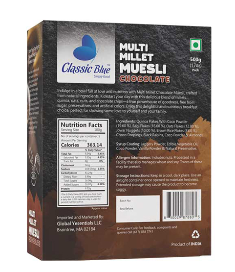 π« Classic Blue Multi Millet Muesli Chocolate β Crunchy, Wholesome & Irresistible