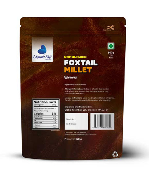 At Classic Blue Groceries, we don’t just deliver millet — we deliver trust, heritage, and farmers’ dedication. From the fields to your kitchen, our Foxtail Millet is a bridge connecting nature, tradition, and your family’s wellbeing.