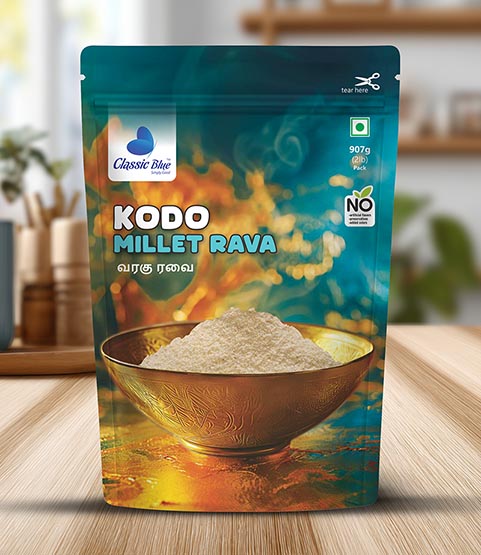 At Classic Blue, we bring back the forgotten grains of our ancestors with love and care. Kodo Millet Rava is not just food β itβs a celebration of heritage, health, and homely comfort in every bowl.