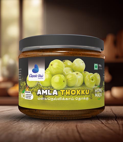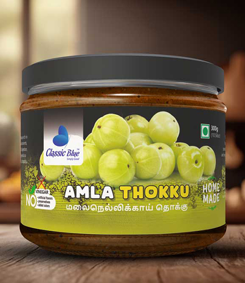 Every jar of Classic Blue Amla Thokku celebrates the care of local artisans and dedication of farmers. Perfect for festive meals, daily lunches, or gifting, it adds flavor, nutrition, and tradition to every dining table.