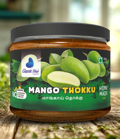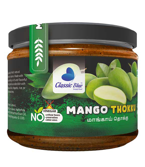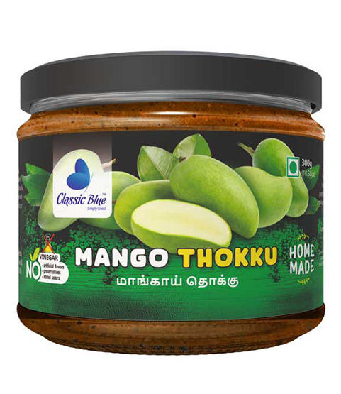 Delight in the perfect blend of tangy mango and aromatic spices with Classic Blue Mango Thokku! Made with premium raw mangoes, hand-picked spices, and natural oils, this South Indian thokku adds zesty, tangy, and savory goodness to rice, idly, dosa, or snacks, making every meal memorable and flavorful.