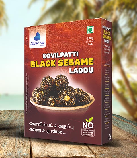 From the sun-drenched fields of Kovilpatti, where farmers nurture every black sesame seed with care, and skilled artisans transform them into timeless sweets, comes the Black Sesame Laddu – a treat that is more than just a snack. Each laddu carries generations of tradition, love, and craftsmanship.