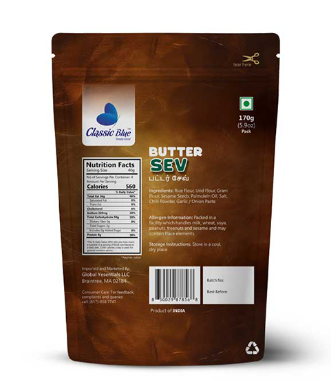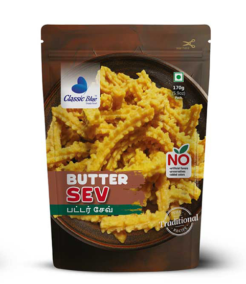 Every bite of Classic Blue Butter Sev is a little celebration of heritage, craftsmanship, and flavor. Perfect for tea-time, festivals, gifting, or sharing with friends, it’s a snack that brings joy, nostalgia, and pure buttery happiness.