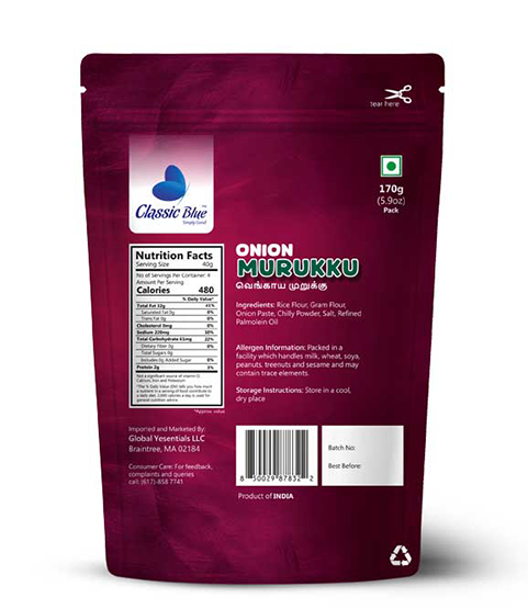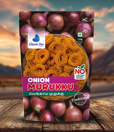 With Classic Blue Onion Murukku, every bite delivers crispy perfection, savory flavor, and artisan care. Enjoy a snack that’s crafted with love, bursting with onion goodness, and rooted in tradition.