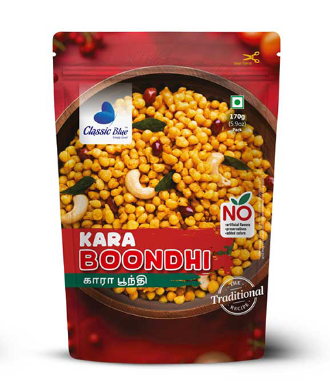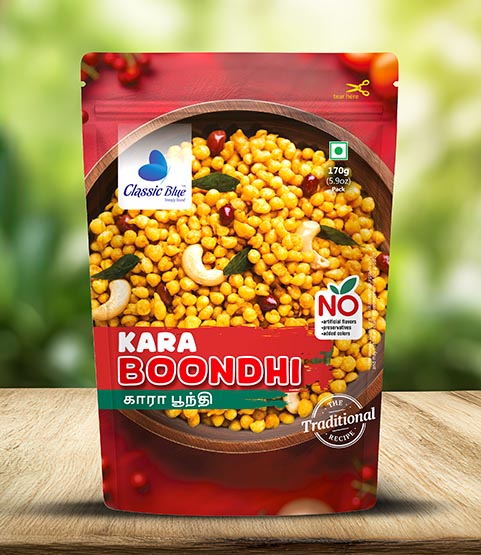 Bring a burst of flavor and crunch to your snack time with Classic Blue Kara Boondhi! Handcrafted using premium ingredients, traditional recipes, and aromatic spices, every bite delivers crispy, spicy, and utterly irresistible goodness.
